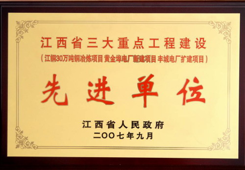 江西省三大重点工程建设先进单位