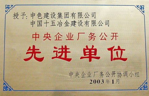 中央企业厂务公开先进单位