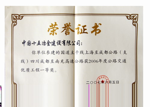 全国公路交通优质工程一等奖